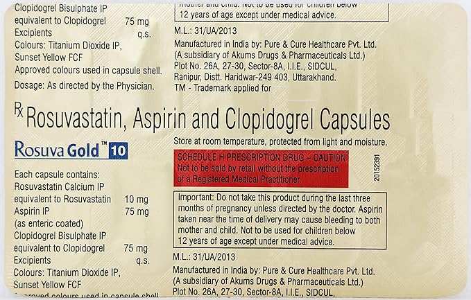 Aspirin + Clopidogrel + Rosuvastatin 75/75/10Mg