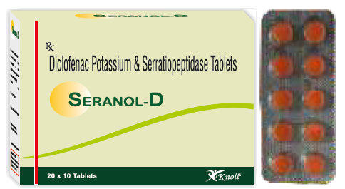 Diclofenac Sodium: Analgesic/antipyreticSerratiopeptidase: Bony and joint pain (osteoarthritis, rheumatoid arthritis, osteoporosis, fibromyalgia), Headache (migraine, tension headache), Inflammation of sinuses, pharynx and sinuses, Ear infections (otitis